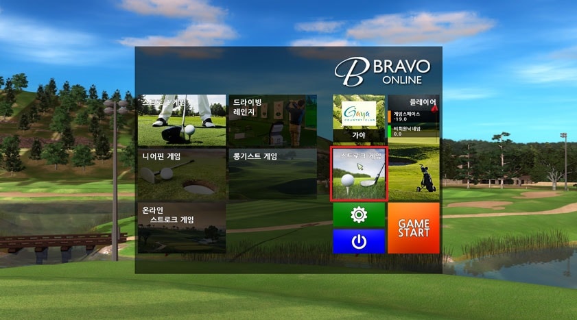 게임 선택 - 해당 부분을 클릭 하면 게임을 선택 할 수 있습니다. 스트로크 게임이 기본적으로 선택되어져 있습니다.
